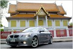 E60 HAMANN #2800 สวัสดีครับ เพื่อนๆ สมาชิก BMW Society ทุกท่าน ผมชื่อ สิทธิพงศ์ ธนะโสภณ ชื่อเล่น Tap ครับ ใช้ชื่อ Login ว่า Tapcd28 ครับ Tap มาจากชื่อเล่นของผม และ cd28 มาจาก จิตรลดา รุ่น 28 ครับ สำหรับรถยนต์ BMW คันนี้ ที่ใช้อยู่ในปัจจุบันก็เป็น 5 Series รหัส E60 525i ปี 2004 สีเทาเข้มครับ ออกมาจาก Barcelona Motor ครับ ผมได้รู้จักกับ BMW Society ตั้งแต่วันแรกที่ออกรถเลยครับ เพราะทางศูนย์ Barcelona Motor ได้แนะนำ ให้ลองมาเข้า Website ดู ปรากฏว่า ติดงอมแงมเลยครับ ได้เจอเพื่อนๆ ที่รักรถ BMW เหมือนกันเยอะแยะเลยครับ เรามาดูกันที่ตัวรถกันต่อดีกว่านะครับ เพราะว่าคันนี้เป็น BMW คันแรกในชิวิต ผมจึงอยากให้เค้าได้รับการตบแต่งแบบเต็มๆ แล้วพอได้เห็นรูป ที่เพื่อนๆ มาโพสกันเป็นตัว E60 HAMANN สีดำ ท่อคู่ จึงบอกได้คำเดียวว่า โอ้วว ... ผมเกิดมาเพื่อนสิ่งนี้ นี้แหละเนื้อคู่นู๋ จึงเริ่มการปฏิบัตการล่าฝัน เริ่มจากไปหาแม็กก่อน โอ้วพราะเจ้า PG2 นี้ราคามันต่างกันเยอะแฮะ ( PG2 มี 2 ชิ้น PG3 มี 3 ชิ้น อย่าให้เห็นโพสถามอีกนะ เดียวตีตายเลย ) ไปลงตัวตัวที่ ร้าน ก. เจริญยางยนต์ คับ ล้อ PG2 19" หน้ากว้าง 8.5" ทั้ง 4 วง รัดด้วยยาง Dunlop SP9000 245/40/19 ( จะเล่นตัวนี้ต้องเอาของเยอรมันนะคับ เพราะของยุ่นมันบวมง่ายเด้อ ) เสร็จแม๊กแล้ว ก้อมาต่อที่บอดี้ ขับไปสามมงกุฎเรย วันนั้น อ้าวไหงม่ะเปิดหว่า เค้าออกไปสนามแข่งกันเด้อ ... จะไปที่นี่โทรล่วงหน้าด้วยนะครับ อิอิ หลังจากโทรถามราคาบอดี้พาร์ท ที่สามมุงกุฎแร้ว ก้อมานั่งกุมหัว ไมมันแพงงี้ฟระเนี้ย ตั้งแต่แต่งรถมา นู๋ม่ะเคยพบพาน เหอๆ แต่ก้อตัดใจไปทำ Hamann Front Apron - Hamann Rear Spoiler - Hamann Roof Spoiler - Hamann Side Sills ก่อน ( เหอๆ เงินหมด กินมาม่าจนอ้วนเรยเนี้ย ) ส่วนด้านหลังเค้าบอกต้องรอของนะอีก 2 เดือน อ้าวตัวชอบเรยอ่ะ หลังท่อคู่ที่เราหลงรัก ดันไม่ครบซะเนี้ย ... แร้วก้อรอๆๆ ระหว่างนั้นก้อแต่งของเล็กๆ พรม Hamann - Hamann Emblem For Bonnet x 2 - Hamann Emblem x 3 - Hamann Pedals + Foot Rest - สติกเกอร์ติดหน้ากระจก Hamann และแร้วก้อผ่านไป 2 เดือนไวเหมือนหนังน้ำเน่า ชะแว้บเค้าสั่งหลังมาแต่ท่อเดี่ยวอ่ะ ก๊าก แย่จัง ม่ะเปนไรมาหาที่อืนก้อได้ ไปถามมาหมด RPM , ก. เจริญ , SCW บอกว่ารอเป็น 2-3 เดือน ใจร้อนอยากได้เร็วๆ ( ความจิงมันก้อรอมาตั้ง 2 เดือนแร้วอ่ะนะ ) เรยมาสั้งที่ Auto Sport อู้วววว ลุงชิ้นบอก " หลานแท้ป พี่สั้งให้เรยเดียวอีก 2 อาทิตย์ มาใส่ได้เรย " พออีก 2 อาทิตย์ม่ะยอมไปไหน รออยู่ร้านน่ะแหละ จนถึง 3 ทุ่มได้มั้ง ในที่สุดก็มาจนได้ Hamann Rear Arpon End Panel incl. Diffuser สำหรับ 4 ท่อ ( โดนตาตี๋ด่าอีกเหนะวันนั้น อิอิ ) ... แล้วก้อไปสั่งท่อ Hamann คู่ ที่สามมงกุฎ พร้อมกับติดตูดใหม่ซะด้วย อิอิ ครบซักที ... สุดท้ายการเดินทางของผมก้อถึงจุดสิ้นสุดแล้ว มันรู้สึกดีนะคับ เวลาที่เราลำบากหาข